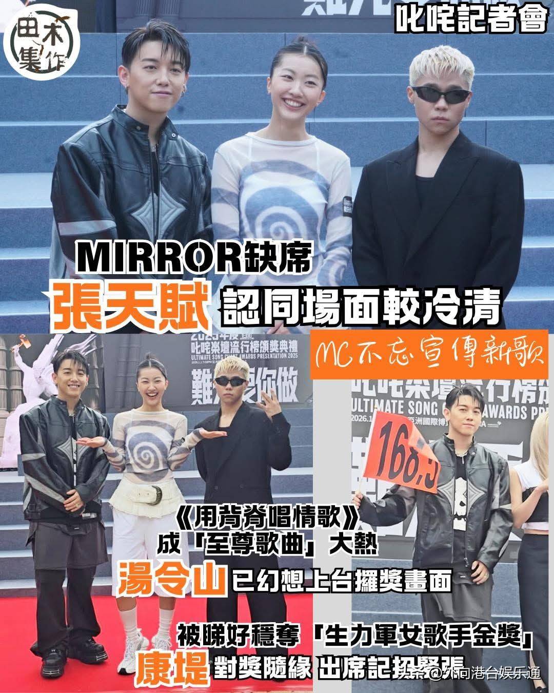 10月20日下午,《2025年度叱咤乐坛流行榜颁奖典礼》记者会在香港昂坪市集顺利举行。根据《01娱乐》和《星岛娱乐》等香港媒体的报道,由于缺少了MIRROR粉丝的助力,现场应援人数大幅减少,往年人潮拥挤的前排位置,这次甚至未能站满人。